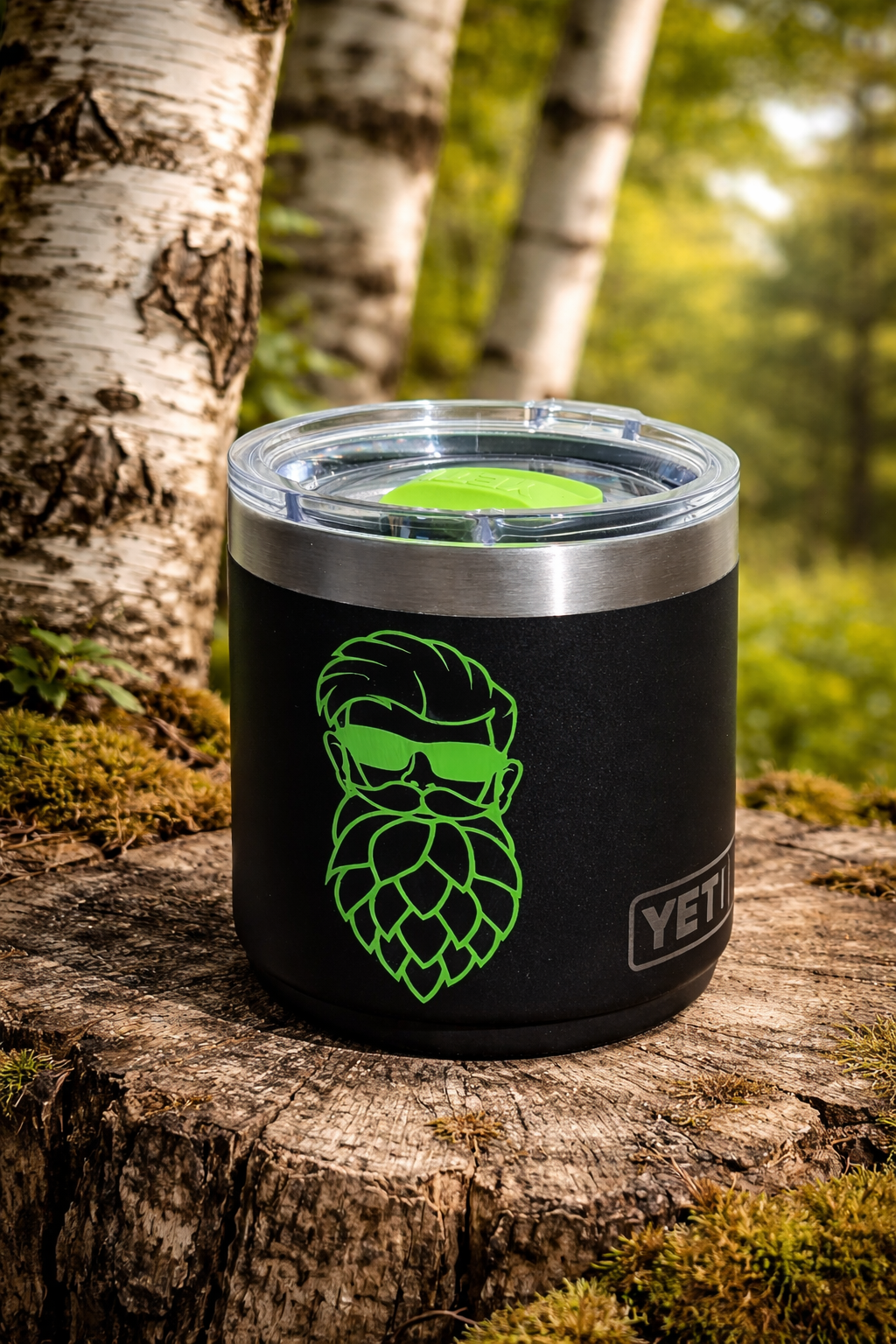 This is the premium YETI Rambler Lowball 10oz tumbler that Hoppy has trusted on-screen for years—now available for the first time with a brand-new, Hoppy-approved custom “Nitro” MagSlider™ lid.